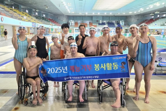 앞서 5월에는 장애인수영팀이 세명학교 장애 학생 10명에게 수영 기본자세를 지도했다.