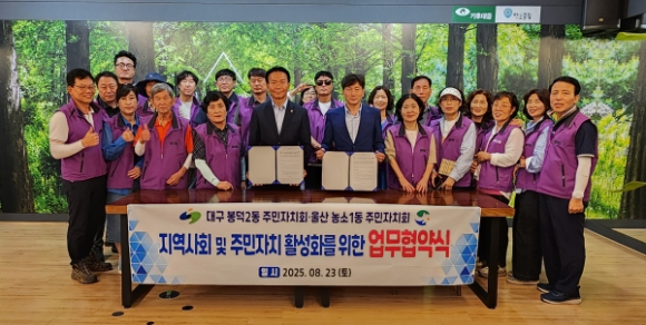대구 남구 봉덕2동 행정복지센터(동장 김혜숙)에서는 지난 23일(토) 봉덕2동 주민자치회(회장 강진규) 주관으로 울산 농소1동을 방문하여 『대구 봉덕2동 주민자치회와 울산 농소1동 주민자치회 자매결연 협약식』을 개최했다고 밝혔다.