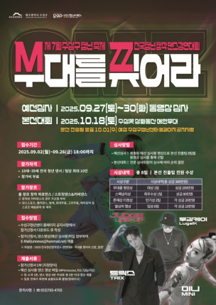 대구 수성구(구청장 김대권)는 오는 26일 오후 6시까지 2025 제7회 수성구청년축제 청년 창작댄스 경연대회 ‘무대를 찢어라’ 참가팀을 모집한다고 밝혔다.