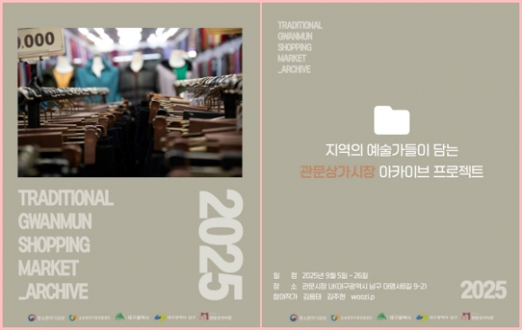 대구 남구(구청장 조재구)의 관문상가시장(상인회장 박삼수)에서 전통시장의 역사와 정서를 기록한 아카이브를 기반으로 한 「관문상가시장 아트팝업 전시전」을 9월 5일부터 26일까지 개최한다고 밝혔다.