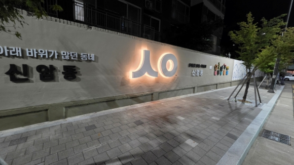 스텐실 기법으로 동구의 명소 3곳(봉무공원, 망우당공원, 동촌유원지)을 선적 요소로 표현하고, 신암동의 이름과 밝은 이미지를 모티브로 한 부착형 조형물을 설치해 한층 밝고 아름다운 거리로 탈바꿈했다.