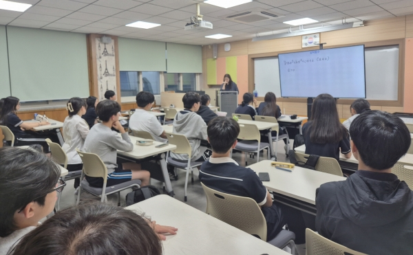 | ↑↑ 대구 수성미래교육재단(이사장 김대권)은 지난 9일 자율형 공립고 2.0 운영 학교인 동문고등학교에서 고교학점제 공동교육과정 ‘수(數) 아카데미’를 개강했다. |