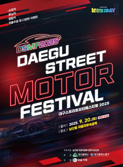 대구 중구(구청장 류규하)는 오는 9월 20일 오전 10시부터 오후 6시까지 남산동 자동차부속골목 일원에서 2025 대구스트리트모터페스티벌을 개최한다.