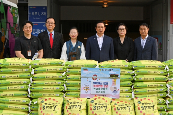 한국불교대학 대관음사(총동문 신도회 회장 이영애)는 지난 16일 어려운 이웃을 위해 쌀 20kg 150포(1,000만원 상당)를 대구 남구청에 기탁했다.
