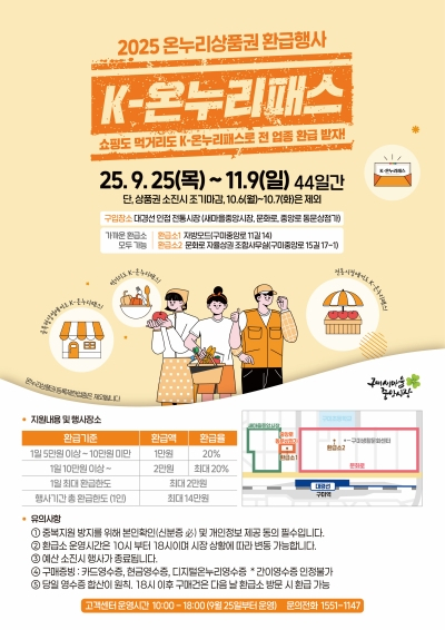 전통시장 이용 촉진과 지역경제 활성화를 위해 마련된「2025 K-온누리패스(온누리상품권환급) 행사」는 9월 25일부터 11월 9일까지(44일간) 열린다.