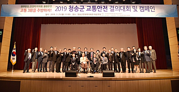 청송군(군수 윤경희)은 지난 25일 청송문화예술회관 대공연장에서 ‘2019년 교통안전결의대회 및 캠페인’을 가졌다.