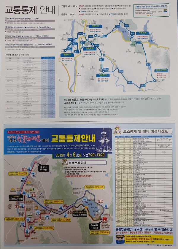 경주시에서는 많은 마라톤 동호인들이 참가하고 시내 일원을 거치는 코스인 만큼 교통 혼잡을 예상해(7번국도 이용 포항, 울산 소통가능, 경주IC → 고속터미널 소통가능, 보문삼거리 → 블루원리조트→ 감포(불국)방향 소통가능, 천군휴게소 → The-k호텔 → 보문삼거리 소통가능) 코스별로 한 차선을 소통시켜 교통 흐름이 원활하도록 한다. [시군향우회인터넷뉴스=정미진기자]
