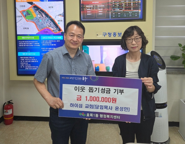 대구 동구 효목1동 소재 하이섬교회(담임목사 윤성민) 신도 일동은 지난 2일, 지역 내 어려운 이웃을 위한 성금 100만원을 동 행정복지센터에 기탁했다.