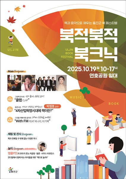 울진군(군수 손병복)는 오는 10월 19일 연호공원에서‘북적북적 북크닉’북페스티벌을 개최한다.