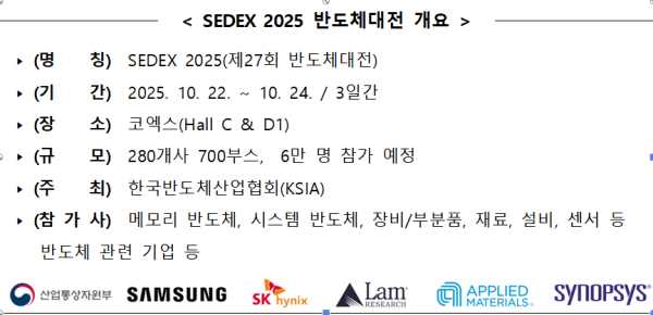 한국반도체산업협회(KSIA)가 주최하는 이번 전시회는 메모리, 시스템, 장비·부품, 센서 등 반도체 전 분야를 아우르는 국내 최대 규모의 전문 박람회다. 280여 개 기업과 6만여 명의 업계 관계자가 참여해 최신 기술과 산업 동향을 공유한다.