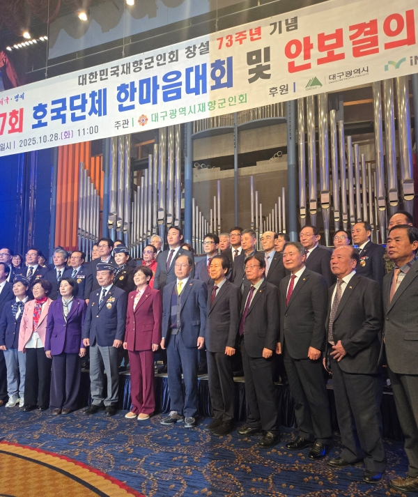 대한민국재향군인회 창설 73주년을 기념하는 ‘제7회 호국단체 한마음대회 및 안보결의대회’가 28일 대구 수성구 호텔인터불고 컨벤션홀에서 열렸다.