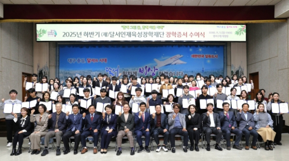 대구 달서구(구청장 이태훈)는 (재)달서인재육성장학재단(이사장 이태훈)이 구청 대강당에서 2025년 하반기 장학금 수여식을 개최했다고 13일 밝혔다.