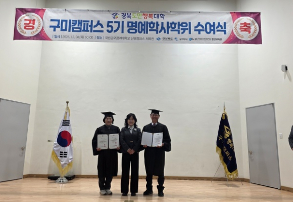 구미시는 지난 4일 국립금오공과대학교 신평캠퍼스 체육관에서 ‘2025년 제5기 경북도민행복대학 구미캠퍼스 학위 수여식’을 가졌다.