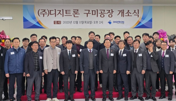 ㈜디지트론(대표이사 이종국)은 12월 11일 구미국가산업단지 제1단지 내 신공장 개소식을 열었다. 개소식에는 이종국 대표이사를 비롯해 정성현 구미시 부시장, 시의원, 협력사 관계자, 임직원 등 120여명이 참석했다.