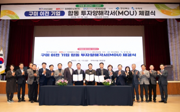 구미시는 12일 시청 대강당에서 총 1,484억원 규모의 합동 투자양해각서(MOU)를 체결했다.