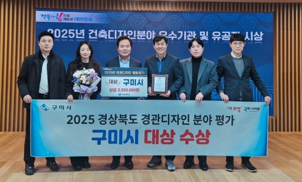 구미시는 지난 16일 ‘2025 경상북도 경관디자인 분야 업무추진 평가’에서 대상을 수상했다.
