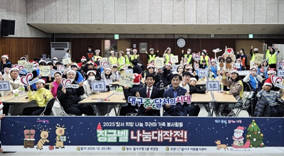 대구 달서구(구청장 이태훈)는 20일, 달서구청 2층 대강당에서 저소득층 아동을 위한 가족봉사활동 「2025 징글벨 나눔대작전」을 실시했다.