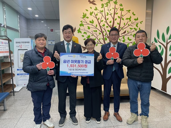 영주중앙로타리클럽(회장 서영탁)이 지난 23일 가흥1동행정복지센터(동장 안순기)에 방문해 이웃돕기 성금 1,931,500원을 기탁했다.