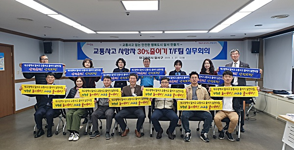 대구 달서구(구청장 이태훈)는 지난 27일 오전 11시 달서구청 4층 회의실에서 ‘교통사고 사망자 30%줄이기’를 위한 교통안전 유관기관·단체 T/F팀을 구성하고 회의를 개최했다.