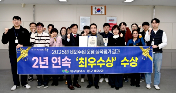 대구 동구청(구청장 윤석준)이 행정안전부 주관 2025년 지방세외수입 운영실적 분석·진단평가에서 2년 연속 ‘최우수상’을 수상하였다.