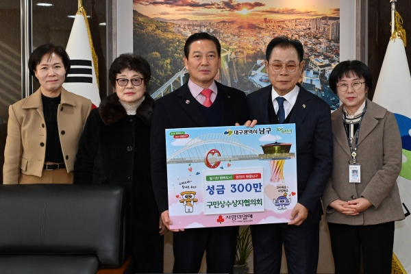 대구 남구 구민상수상자협의회(회장: 조영원)는 지난 23일 남구(구청장 조재구)를 찾아 어려운 이웃을 위해 써달라며 성금 300만원을 기탁했다. 이날 성금은 저소득 소외계층을 위해 사용될 예정이다.