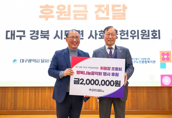 이날 대구경북시도민사회공헌위원회 조동희 위원장은 달서구노인종합복지관에 200만 원을 지정 기부하며 어르신 복지 증진을 위한 나눔의 뜻을 전했다.