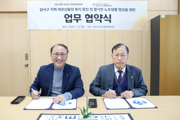 | ↑↑ 대구경북시도민사회공헌위원회, 달서구노인종합복지관과 어르신 복지증진 위한 업무협약식 개최 |