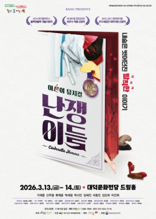 2015년 초연부터 차곡차곡 쌓아온 작품성을 기반으로 SNS를 통해쇼츠와 릴스 영상이 화제가 되며 뮤지컬 마니아를 넘어 일반 대중들까지 대학로로 불러들이고 있는 뮤지컬 「난쟁이들」의 첫 대구 공연을 대덕문화전당 드림홀에서 만나볼 수 있다. (3월 13일(금) ~ 14일(토)까지, 전석 6만원, 17세 이상 관람가)
