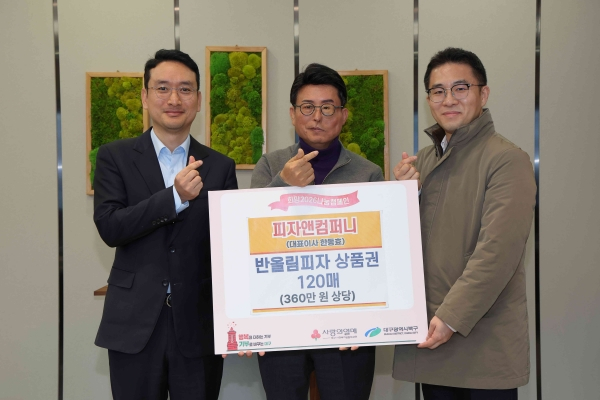 주식회사 피자앤컴퍼니(대표이사 한동효)는 설 명절을 맞아 1월 30일(금), 관내 저소득 주민을 위한 후원으로 반올림피자 상품권 120매(360만 원 상당)를 대구 북구청(청장 배광식)에 기탁했다.