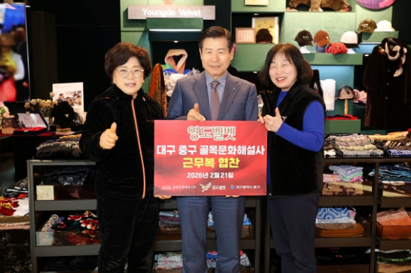 영도벨벳(회장 류병선)은 지난 21일 대구 중구 골목문화해설사의 원활한 현장 활동을 지원하기 위해 근무복으로 활용할 벨벳조끼 90벌을 기증했다.