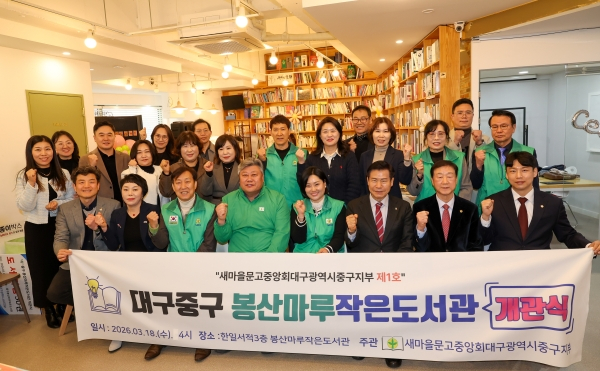 새마을문고중앙회대구중구지부(회장 김은진)는 지난 18일 한일서적(이천로 224)에서 중구문고 1호 작은 도서관 ‘봉산마루’ 개관식을 개최했다.