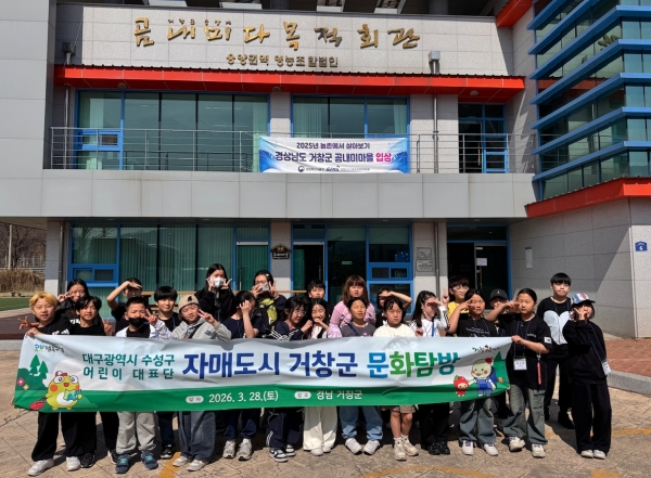 대구 수성구는 지난 28일 지역 초등학생으로 구성된 어린이대표단 25명이 자매도시 거창군을 방문해 문화 체험 행사를 진행했다고 밝혔다.