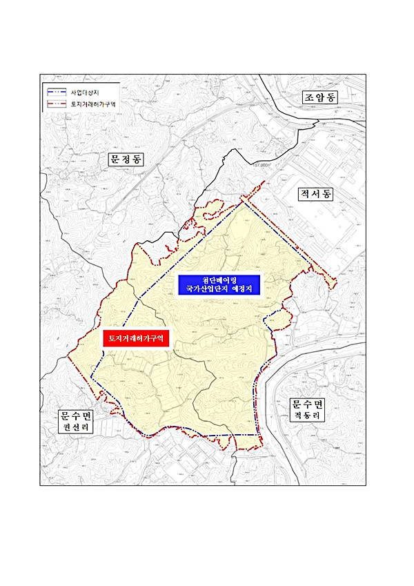 영주 첨단베어링 국가산업단지 조성사업 예정지인 영주시 적서동, 문수면 권선리 일원이 부동산 투기와 급격한 지가 상승을 방지하기 위해 토지거래가 제한된다.