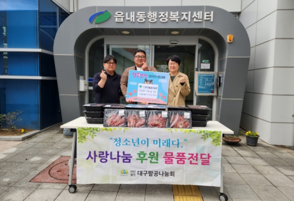 (사)대구팔공나눔회(이사장 정수홍)는 봄을 맞아 3월 31일(화) 읍내동 행정복지센터(동장 손보현)를 방문하여 지역 내 어려운 이웃을 위해 양념소불고기 22kg를 후원했다.
