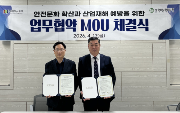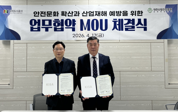 구미도시공사는 대한산업안전협회와 산업현장 안전문화 확산 및 근로자 산업재해 예방을 위한 업무협약(MOU)을 체결하고, 안전 중심의 경영체계 구축을 위한 협력에 나섰다.