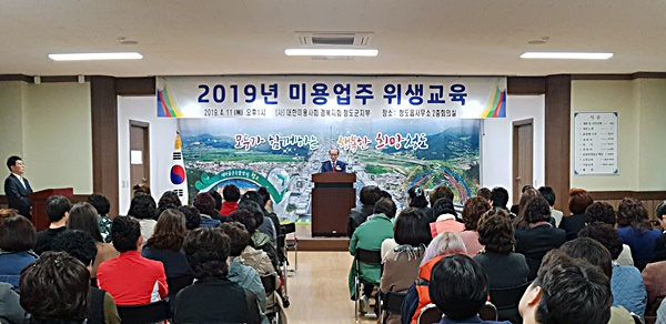 청도군(군수 이승율)은 지난 11일 청도읍사무소 회의실에서 관내 미용업주 60여 명이 참석한 가운데 (사)대한미용사회청도군지부 주최로 ‘2019년도 미용업주 정기 위생교육’을 실시했다.