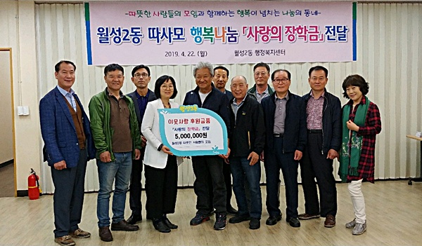 대구 달서구(구청장 이태훈)는 지난 22일 월성2동행정복지센터에서 ‘따뜻한 사람들의 모임’(회장 김두환) 관계자들이 ‘사랑의 장학금’ 전달식을 가졌다고 밝혔다.