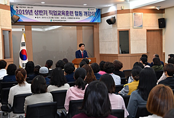 경산여성새로일하기센터는 지난 23일 시청 별관 회의실에서 교육생, 내빈 등 90여 명이 참석한 가운데 ‘2019년 상반기 여성직업교육훈련 합동 개강식’을 개최했다.