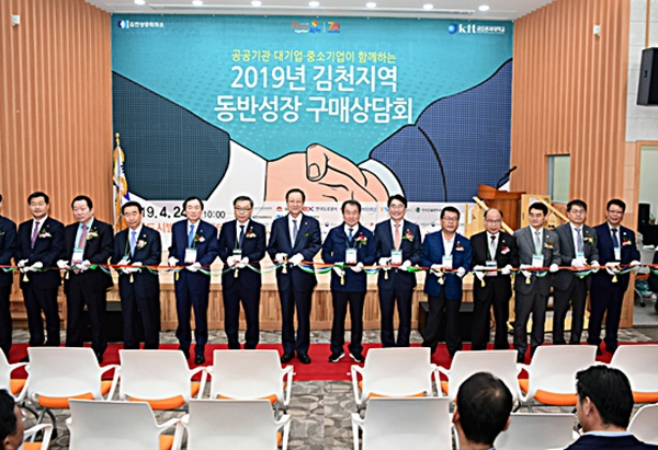 김천시는 지난 24일 10시 혁신도시발전지원센터(구. 산학연유치지원센터)에서 ‘공공기관·대기업·중소기업이 함께하는 2019년 김천지역 동반성장 구매상담회’를 성황리에 마쳤다.