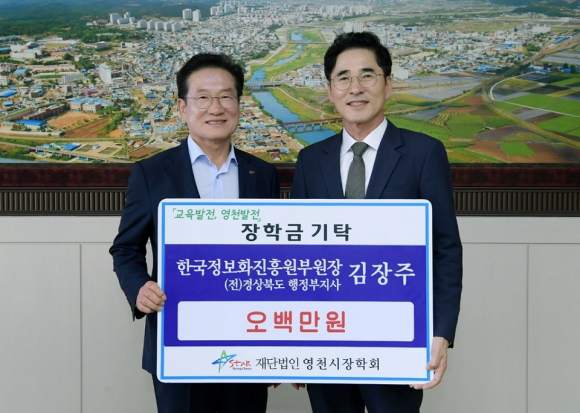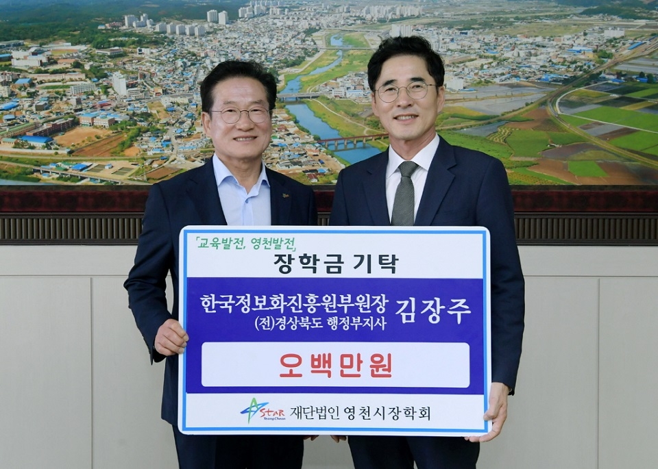최근 한국정보진흥원 부원장에 부임한 김장주 전 경북도 행정부지사가 지역의 후학 양성을 위해 장학금 500만원을 지난달 27일 영천시 장학회에 기탁했다.