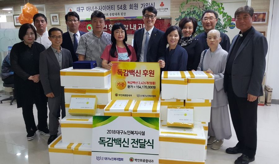 박언휘 원장은 2일 '노인의 날'을 맞아 대구영락원 등 대구·경북 노인복지시설 26곳 어르신들의 독감예방접종을 위해 독감백신 3426도즈를 대구노인복지협회에 전달했다.