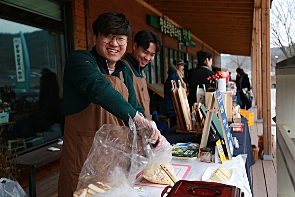 또, 지역에서 활동하는 수공예 작가들의 작품도 함께 판매되고 있으며, 청년들의 푸드트럭도 함께해 새로운 아이디어와 패기로 다양하게 만들어진 사과가공품과 음식들을 판매하고 있어 이를 맛보는 재미도 쏠쏠하다.