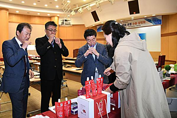 이날 수출설명회에는 미국 수출을 희망하는 영주시 수출기업협의회 회원사인 농·특산물 업체들이 참여해 자사 상품을 소개하는 품평회를 갖고, 신상곤 대표에게 품목별 수출 전략 등을 상담하는 형식으로 진행됐다.