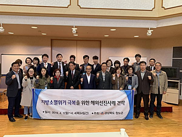 지난해 한국고용정보원이 발표한 「한국의 지방소멸 2018」(고용동향 브리프, 2018. 7월호)에 따르면, 전국 시․군․구 228개 기초지자체 가운데 청도군은 소멸위험지수 0.194로 전국 소멸위험지역 89곳 중 8번째 속해 있어 심히 우려되는 상황이다. 이에 청도군에서는 지방소멸 극복을 위해 각종 시책 발굴과 일본 선진사례의 벤치마킹, 분야별 대책회의, 홍보영상물과 책자 발간 등 주민의식 개선 등 많은 행정력을 집중하고 있다.