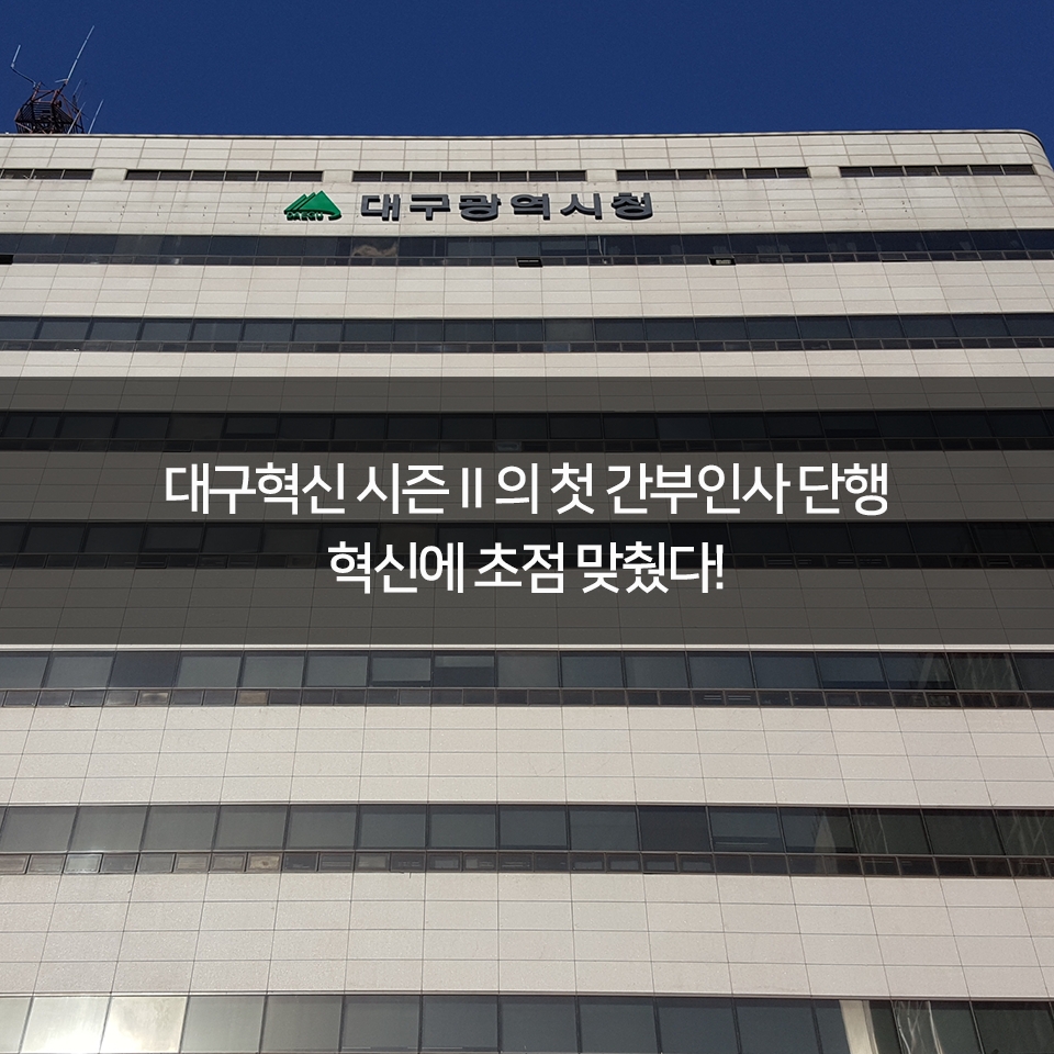 이번 간부인사는 국장급 13명과 과장급 57명으로, 민선 7기 권영진 시장의 취임 일성인 ‘중단 없는 혁신’을 뒷받침할 유능한 간부를 과감히 발탁하는데 초점을 맞췄다.