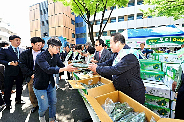 군위군은 지난 2일 대구 수성구청 광장 및 수성구 상단공원(수성유원지)에서 아삭아삭한 가시오이 맛보기 행사를 했다.