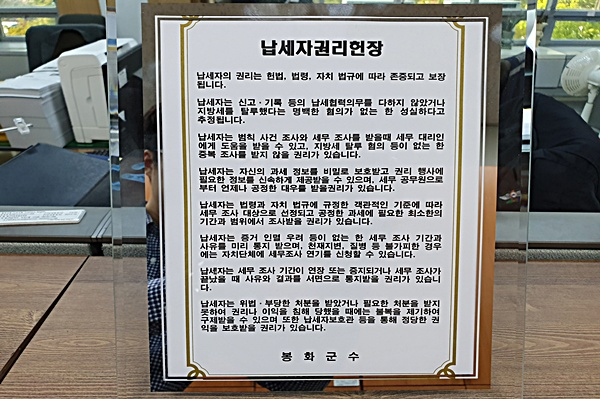 한편, 지난해부터 봉화군에 납세자보호관을 설치하여 지금까지 고충민원, 권리보호 요청 등 민원을 처리하고 있다.