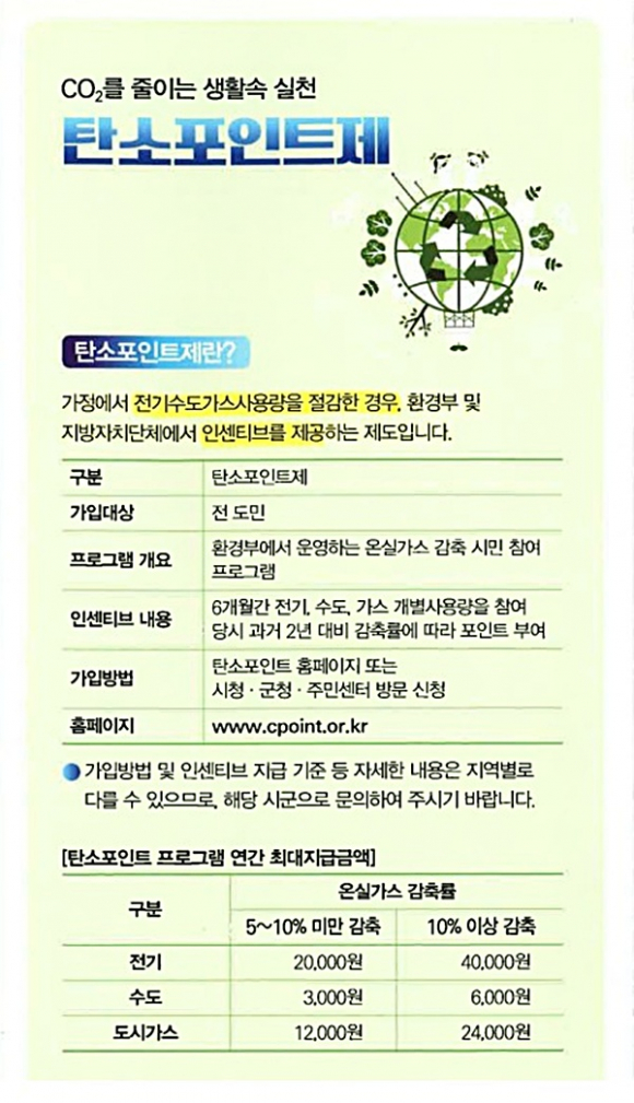 읍·면사무소 방문신청 또는 탄소포인트제 홈페이지(www.cpoint.or.kr)를 통해 참여 할 수 있다. [시군향우회인터넷뉴스=정미진기자]
