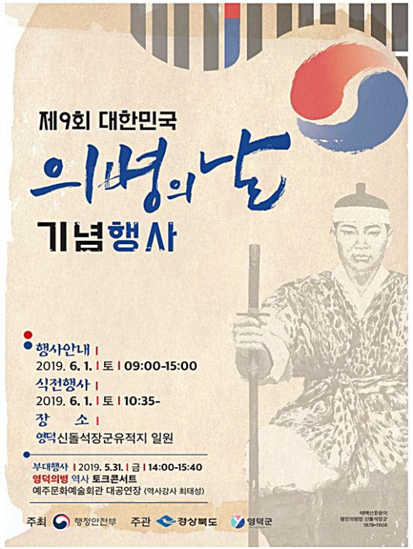 3.1독립만세운동과 임시정부 수립 100주년을 맞이하는 2019년, 그 어느 곳보다 독립운동의 열기가 뜨거웠던 영덕에서 ‘제9회 대한민국 의병의 날’ 공식 기념행사가 열린다.