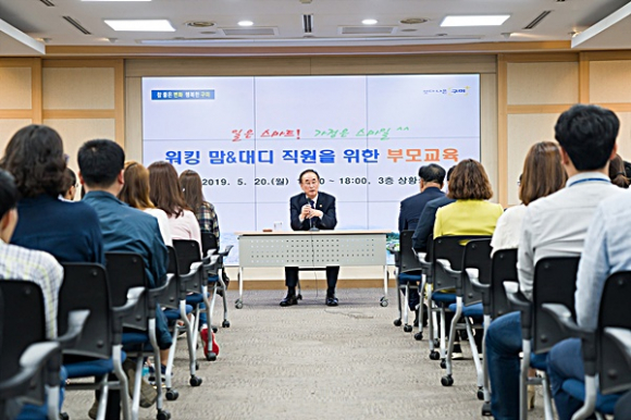 구미시는 지난 20일 시청 3층 상황실에서 만18세 이하 자녀를 둔 직원 230여 명을 대상으로 ‘워킹맘·워킹대디 직원을 위한 부모교육’을 실시했다.